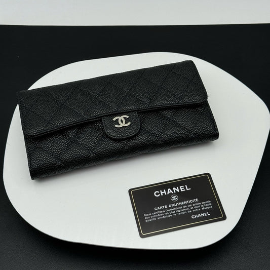 【シャネル】長財布 キャビアスキン ロングウォレット !ブラック