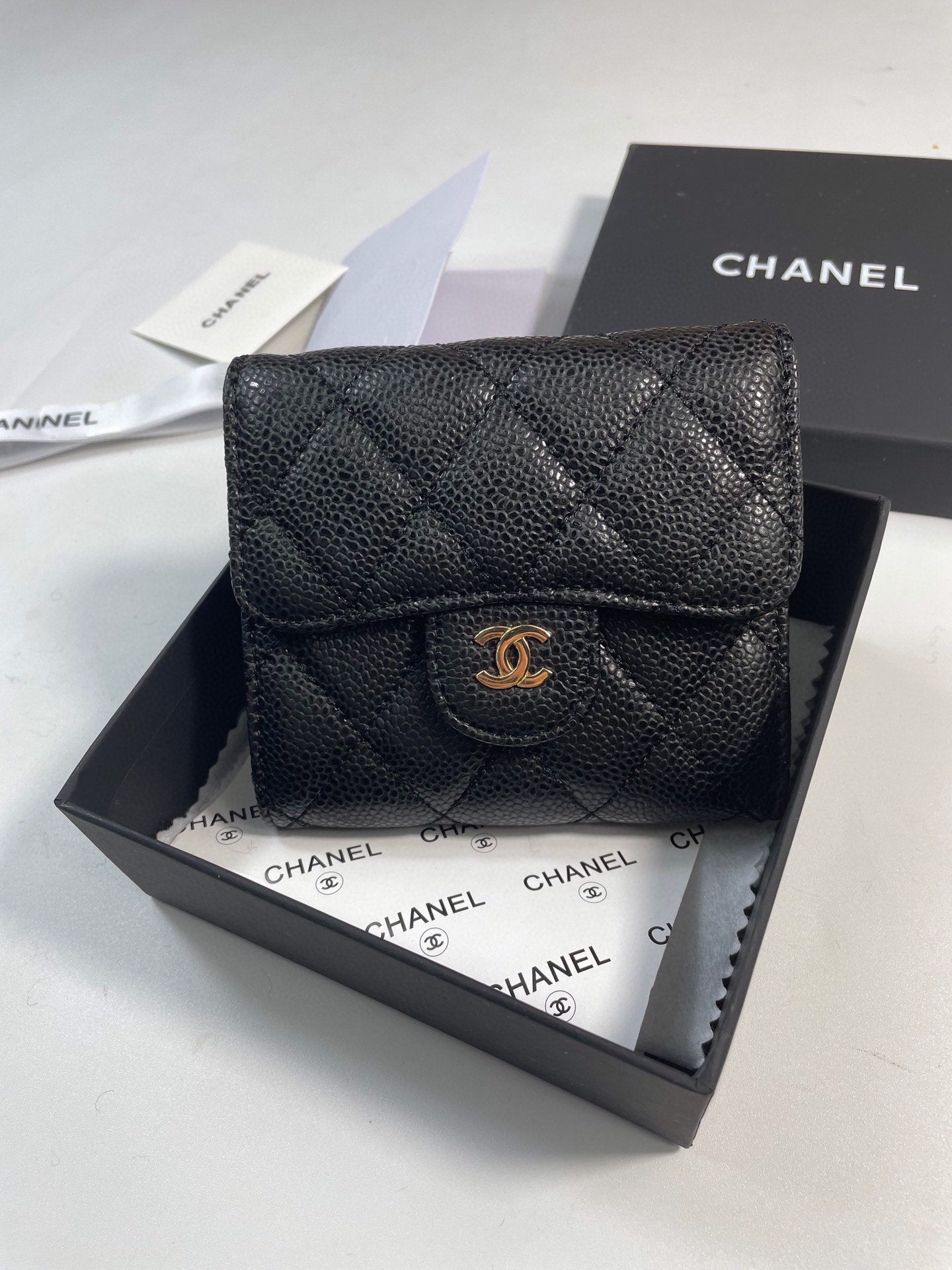【シャネル】マトラッセ♪二つ折り財布 ♪ミニウォレット*キャビアスキン黒AP0229 AP0231
