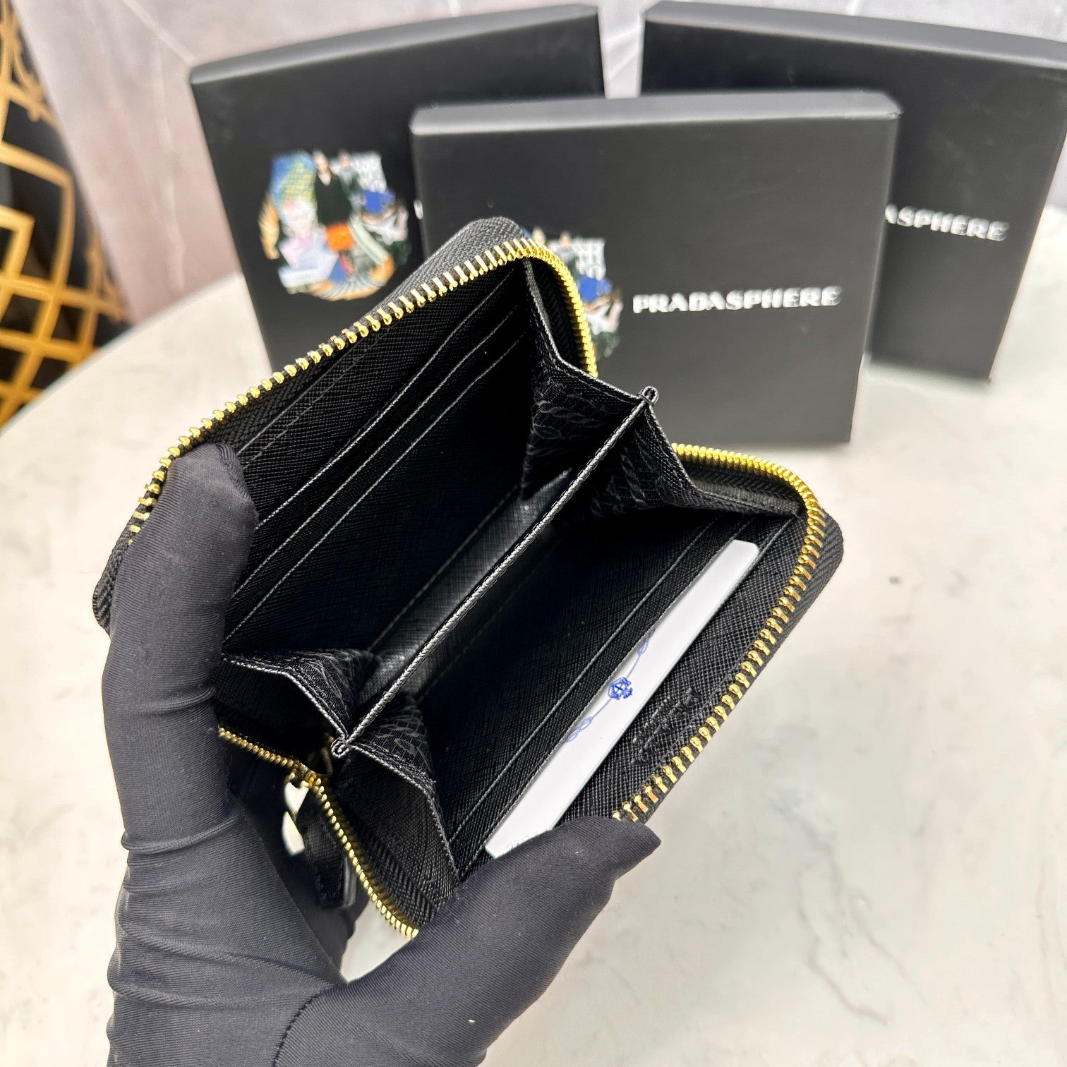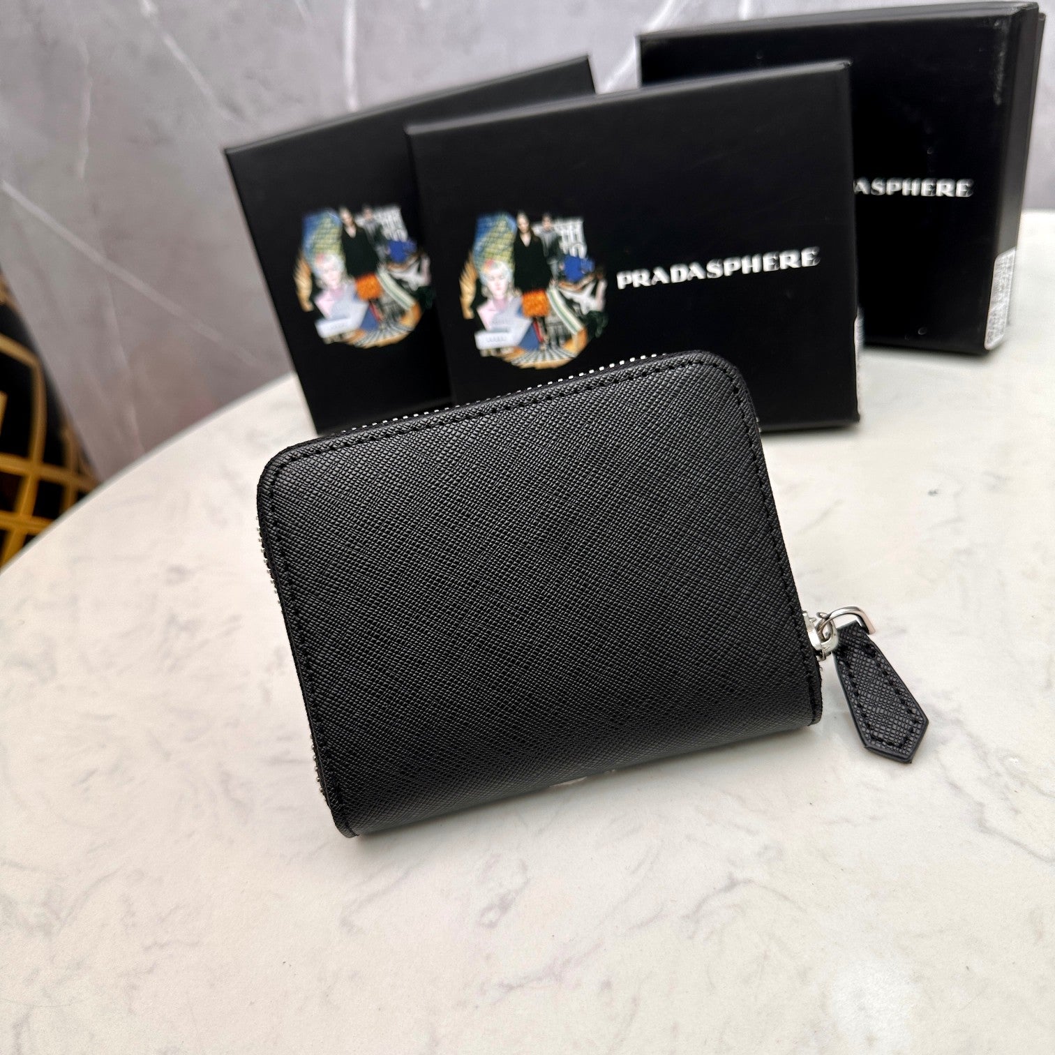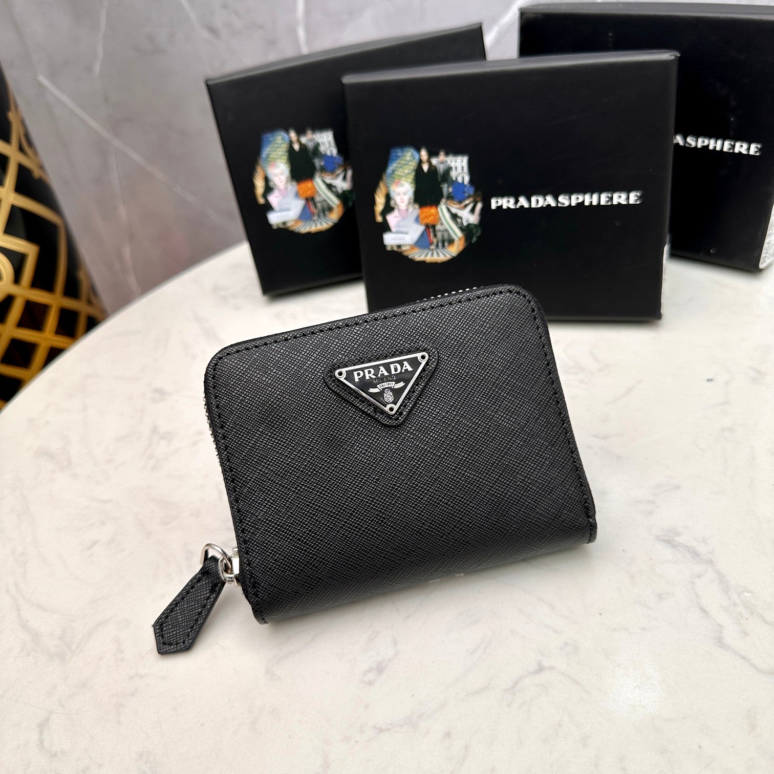 【プラダ】アイコニックな三角プレート付き 小さなジップ財布 春の新作